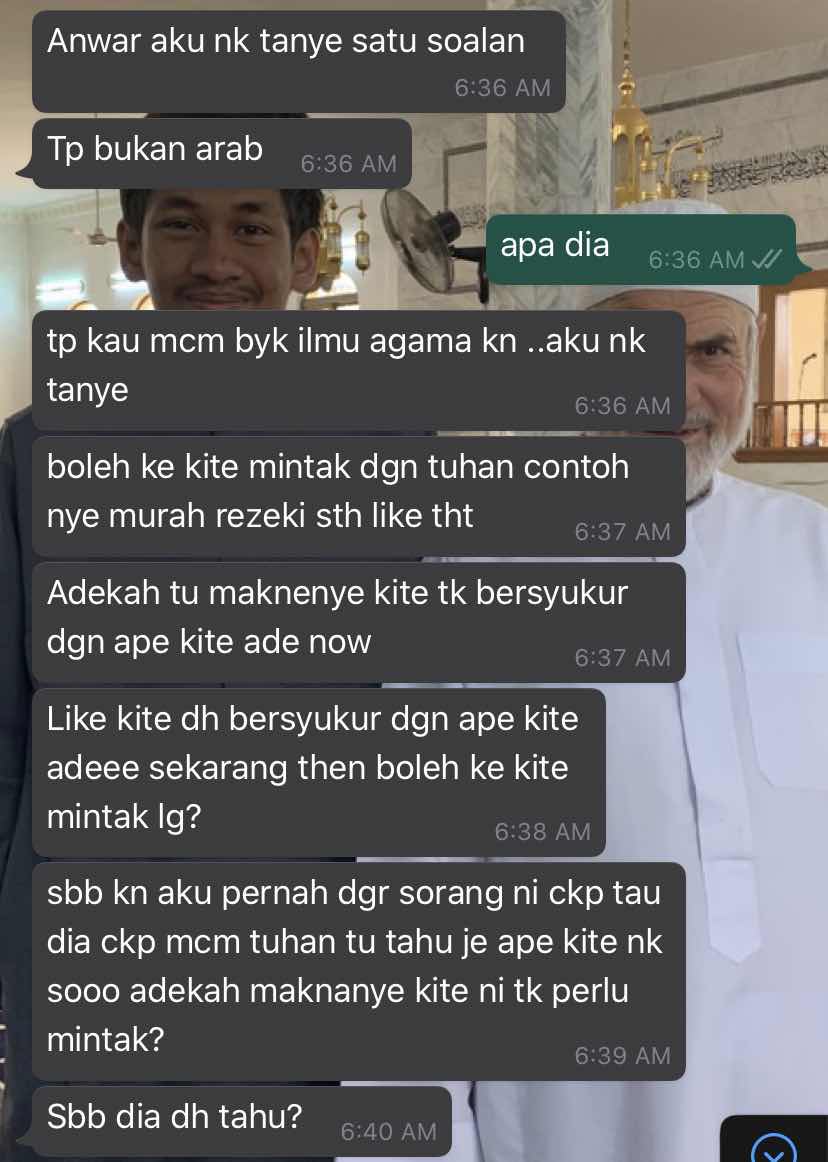 Atas dasar sangka baiknya dengan aku, dia tanya satu soalan pasal hakikat kesyukuran.